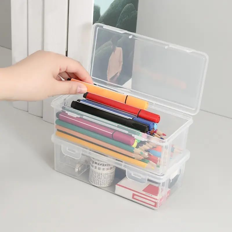 - Transparent Design: The storage box is made of clear plastic, allowing you to easily see the contents without having to open it. This transparency helps in quickly identifying and accessing your stationery items.