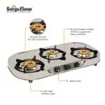 Surya Flame Costa Gas Stove 3 Burner Stainless Steel Body Manual LPG Stove with Sleek Design Body 2 Years Complete Doorstep Warranty Fg