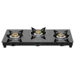 Suryaflame Black Glass Solitaire 3 Burner LPG Stove Glass-Top, Gas Stove with Ultra-Slim Body, Brass Burner, Metal Knob Design and 2 Years Complete Doorstep Warranty