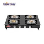 Suryaflame Nexa LPG Gas Stove| Gas Stove 4 Burners| Glass Top With Stainless Steel Body - Black