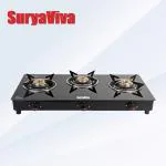 SURYAVIVA Nano Plus Designer 3B Toughened Glass 3 Brass Burner Gas Stove(Manual Igniton, Multicolour)