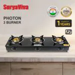SURYAVIVA 3B Photon Bk Toughened 3 Cast Iron Burner(Manual,Black) Glass Manual Gas Stove