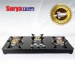 SURYAVIVA Hobtop 3B BK Toughened Glass 3 Brass Burner Gas Stove(Manual Igniton,Black)