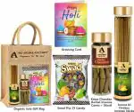 The Aroma Factory Happy Holi Gift Hamper Set (Swad Mix 25 Candy,Pineapple Agarbatti, Kesar Chandan Dhoopcone, Greeting Card, Jute Bag) Gift Item