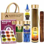 The Aroma Factory Navgrah Sambrani Dhoop Cups, Chandan Agarbatti 100g, Loaban Dhoop Batti, Fresh Active Cones with Stand & Jute Bag | 0% Charcoal |100% Organic Incense for Pooja, Havan