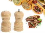 THW 3.5 Inches Long Wooden Salt Shaker and Pepper Mill Grinder Crusher Set, Condiment Holder