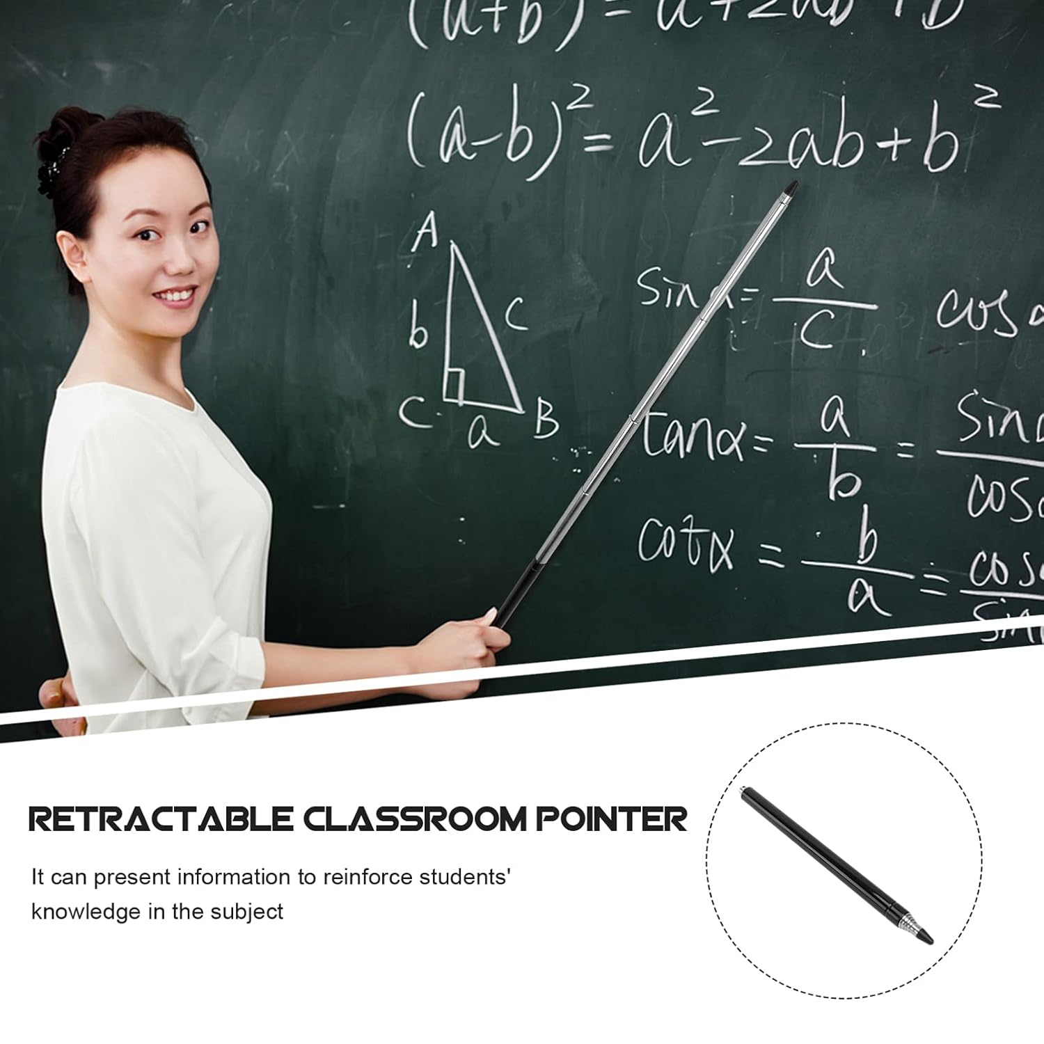 - Telescopic Expandable Metal Stainless Steel Foldable Tools with Nylon Cover This pointer is professional telescopic electric whiteboard Teaching Pointer & Guide