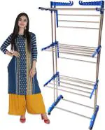 Tnc Blue Silver Steel Floor Cloth Dryer Stand T-Cds-3Tier-B2Ss-0195