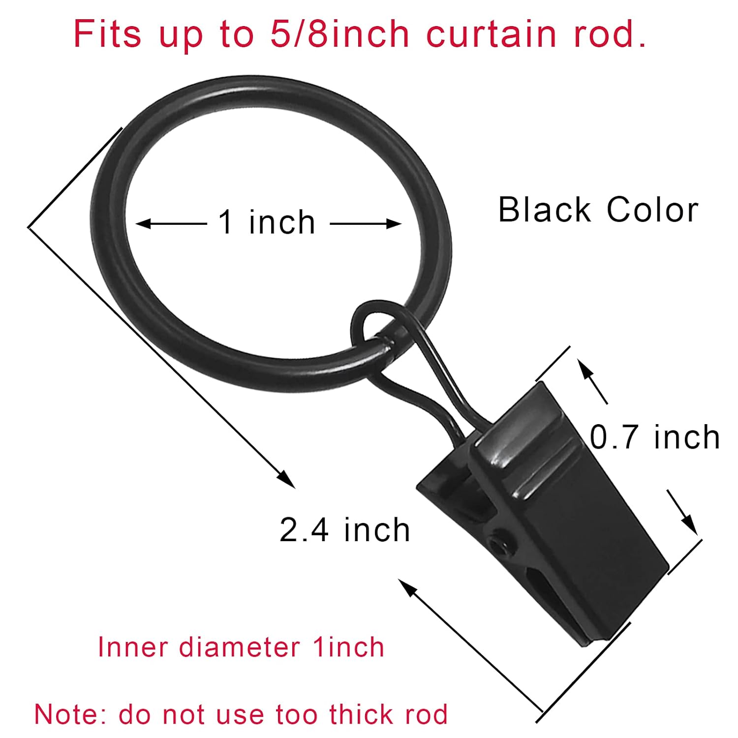 TRUENIX Black Curtain Rings with Clips Pack of 44 | 1 Inch Inner Diameter Fits up to 5/8" Rod Hanger Hooks for Drapes, Curtains, Bows & Home Decor