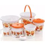 UMA Plastic Bathroom Set 07 Pieces Heavy Duty, Large Capacity - ORANGE