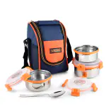 UNINOX Trendy Stainless Steel Lunch Box | Set of 3 pcs (300,300,450 ml) 1 Steel Spoon | Lunch Box For Office, Picnic, Student | BPA Free | Orange