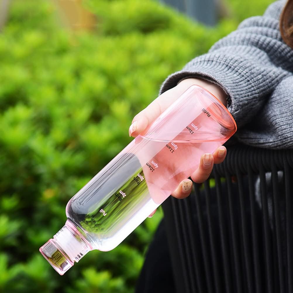 VAGHASIYA ENTERPRISE 1 Pcs Glass Bottle Direct Drinking Water Bottle with Time Marker Slim Fashion Clear Water Bottle Storage Refill Container for Men and Women Cup Scale Cup Time Glass Transparent Simple Water Bottle