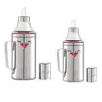 VARNA Stainless Steel Oil Dispenser with Nozzle 500ml, 750ml | Oil Container | Oil Pourer | Oil Pot | Oil Can| Oil Bottle with Handle (Pack of 2)