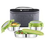 Virtue Green Stainless Steel And Plastic Lunch Box (Pack of 3)
