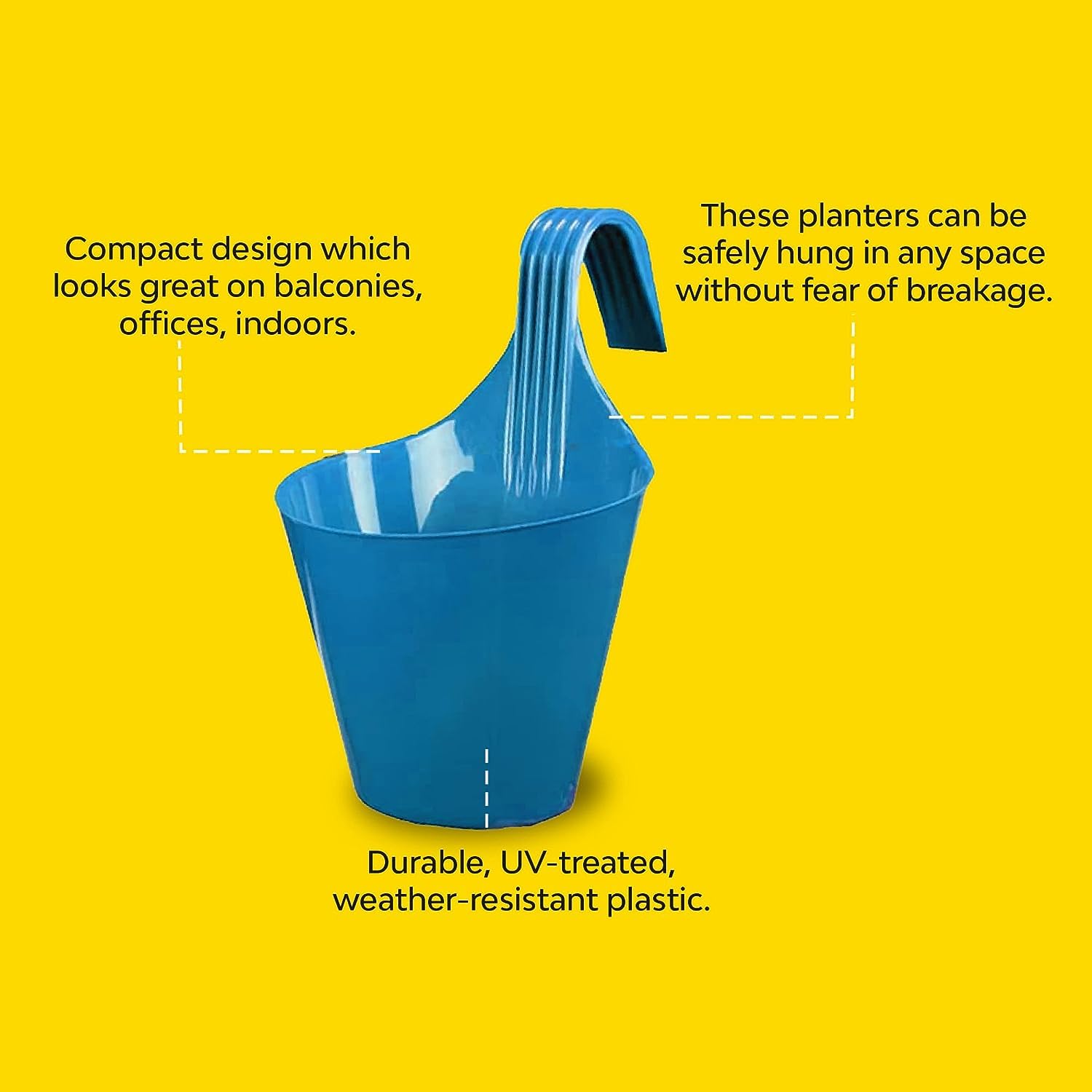 VISH CREATION Plastic Hanging Planters - 2 Pcs (8 Inch, Multicolor) | Flower Hanging Pots for Home & Balcony Garden | Hanging Planters for Home Plants | Hooked Hanging Pots