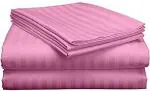 VORDVIGO 300 TC Satin Double Bedsheet, Satin Stripes/Lining Stripes Double Bedsheet with Two Pillow Covers (Baby Pink)