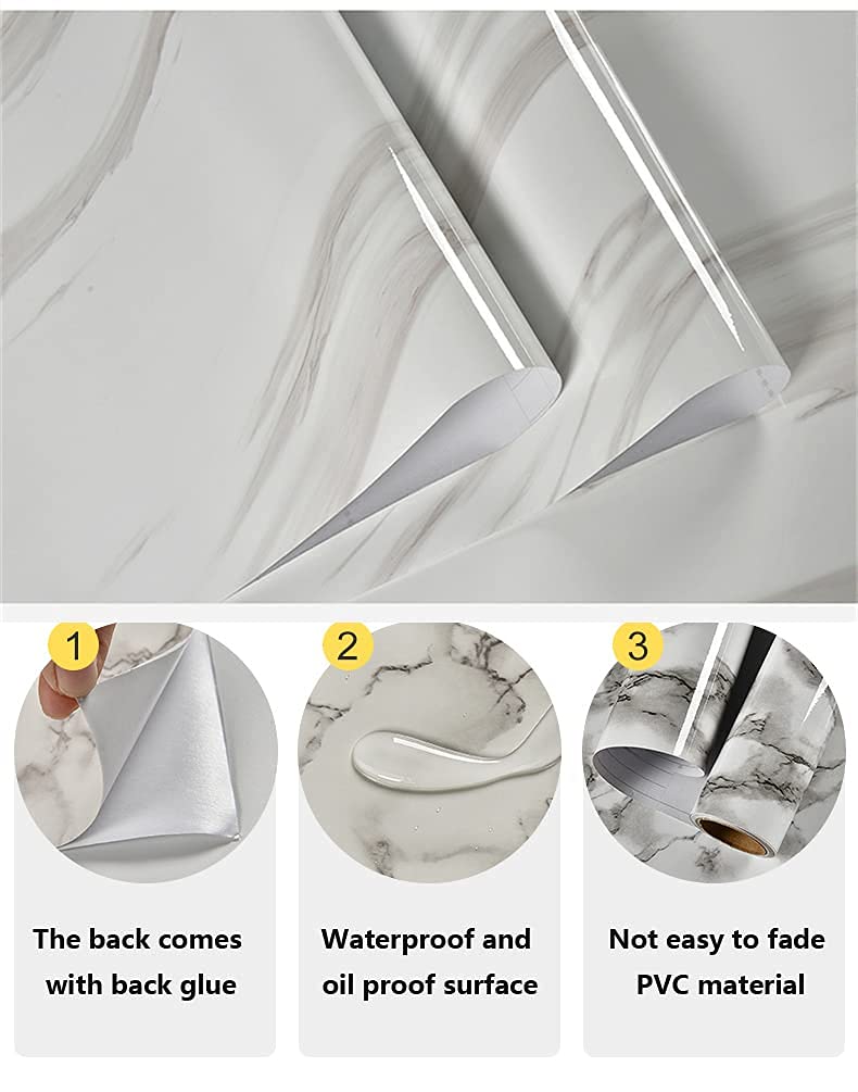 - Smooth surface, easy to apply. You can do DIY splicing. Quick and economical alternative to real marble. Great for kitchens, bathrooms, home and office applications.