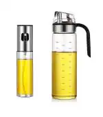 Wolblix Oil Dispenser 18 OZ and Oil Sprayer Bottle for Cooking Set - Oil and Vinegar Cruet Bottle Set for Kitchen - Glass container with Drip-Free Stainless Steel Spout Oil Mister for Air Fryer