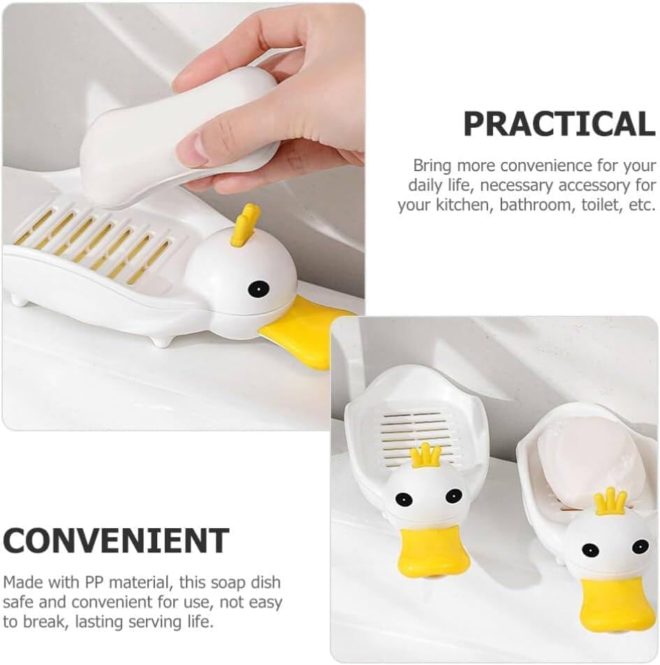 ZUBAT 1pcs Dish Bar Soap Drying Holder Draining Soap Holder Duck Figurine Soap Cute Duck Soap Dish Self Draining Soap Holder Plastic Soap Tray Shower Soap Box Bar Soap Rack Sink Soap Shelf for Bathroom Bathtub Kitchen