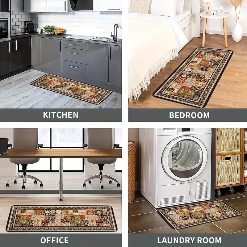 - The stain-resistant kitchen mat is made of Rubber + technical velvet material that is soft to the touch, and the 0.3" thick kitchen floor mat provides more cushioning and stability.