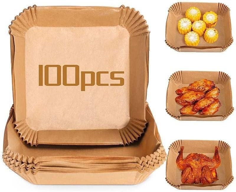 - These non-stick disposable air fryer baking paper are designed with a square bowl shape, which do not need to tear, fold, cut, nor bend, and you can directly put it in when you are ready to cook. Its heightened edge 4.5cm can protect the side of fryers a