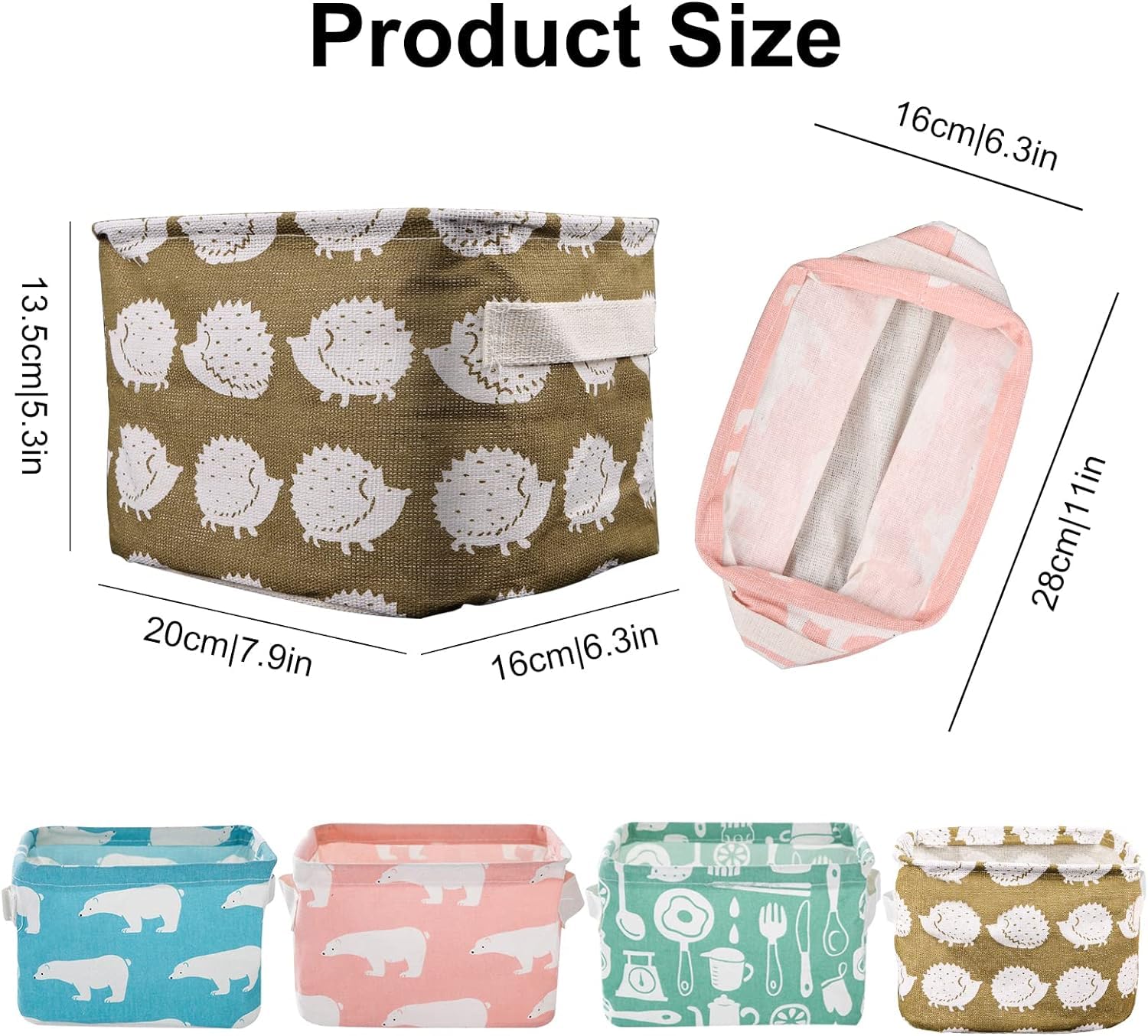 Zyronex 4 pcs Fabric Storage Baskets Collapsible Small Canvas Baskets Waterproof for Desk Storage and Household Organizer for Toys Shelves Cosmetics Stationery, Multicolor