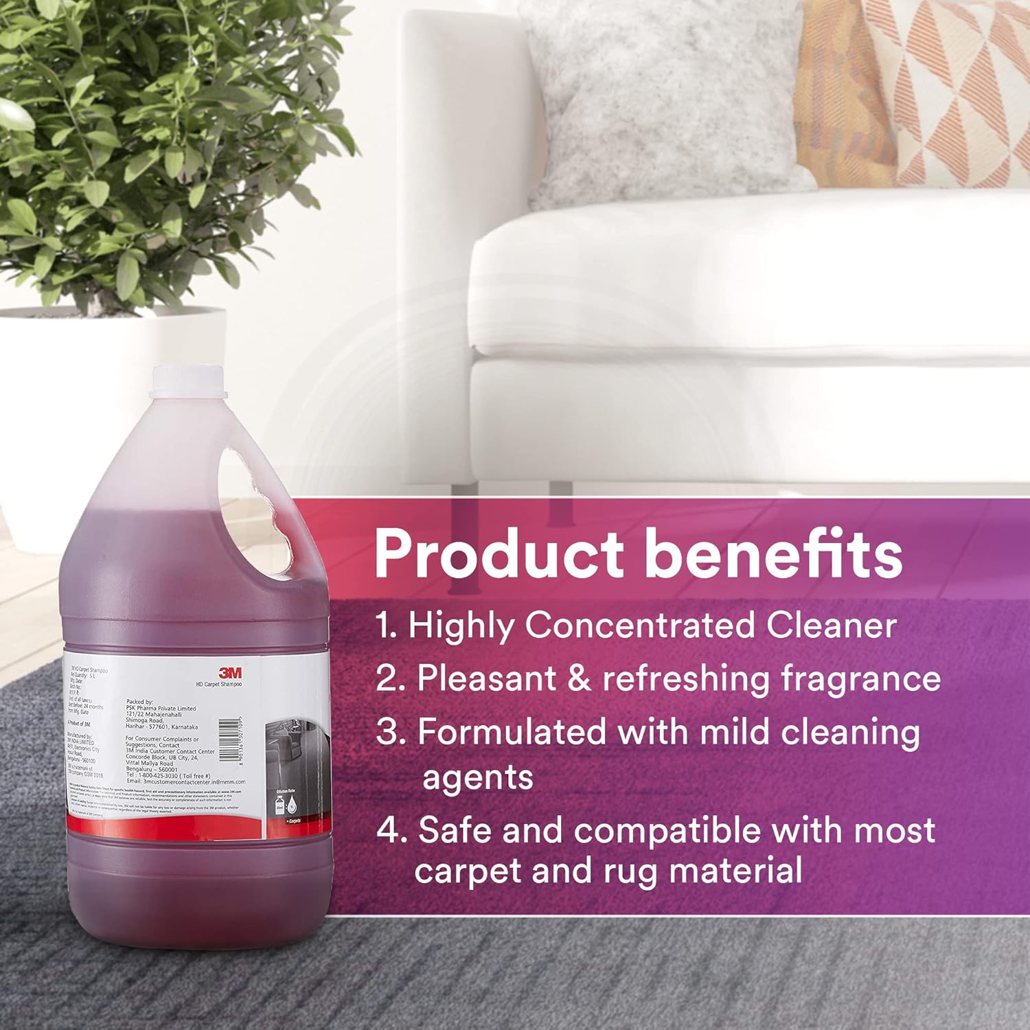 3M HD Carpet Shampoo | Upholstery Cleaning Liquid for Carpets | Remove Stains & Damp Odors, Non Harsh Chemicals, Clean & Sanitize in one Go | Compatible with All Machines | 5L, Pack of 1