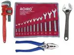 ACHRO Multi Purpose Tool Kit Set (Contains 12 Piece Combination Spanner Set + 10 Inch Pipe Wrench + 8 Inch Adjustable Wrench + 8 Inch Combination Plier Tool)