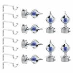 GLOXY Aluminium Single Diamond Curtain Brackets Parda Holders with Support Fittings 1 Inch Rod Pocket Finials Designer Door and Window (Blue 4 Pair)