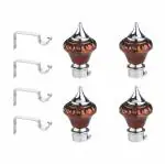 GLOXY Pair of 2 Stainless Steel Brackets Parda Holder with Support 1 Inch Curtains Rod Pocket Finials Designer Door & Window Curtain Holders & Rod Support Fittings- (Coffee)