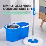 Homeleven Steel Spin Mop Bucket Set With Stainless Steel Wringer and 2 Microfiber Refills - Blue