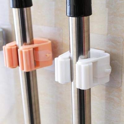 MOLTERA Mop Broom Holder, Self Adhesive Organizer Wall Mount Clips for Kitchen Bathroom Closet Garden Garage Mop and Broom Holder Wall Mounted, (Multicolor) - 4 Piece