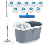 V-Mop Classic Grey Magic Dry Plastic Spin Bucket Floor-Cleaning Mop With Floor-Wiper + 9 Microfiber Refills