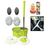 - 4 wheel bucket fully featured combo pack, 4 refill, 1 dish washer, 2 kitchen zunna, 1 glass wiper, steel dreyr mop st