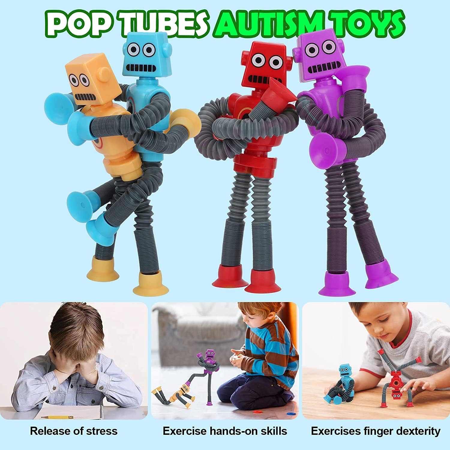 - The Robot pop tubes are made of high-quality environmentally friendly plastic, meeting the highest safety and quality standards, but without the sharp edges of the expansion tube and are designed to withstand a ton of fidgeting, popping, stretching, pulli