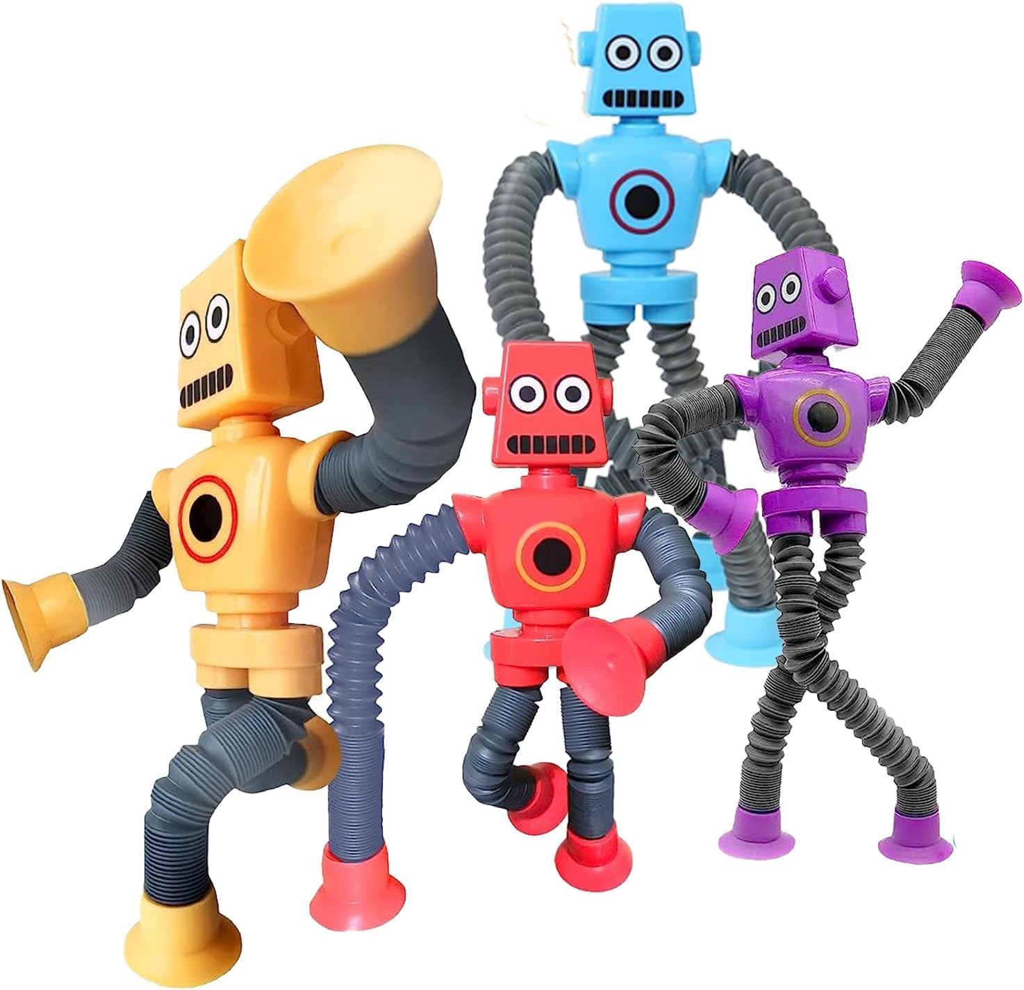 Pluspicks Robot Toy Figures,Flexible Men, Telescopic Suction Cup Robot Toy, Telescopic Pop Tubes, Fidget Tubes Sensory Educational Toy, Pop, Stress Relief, Connect and Play, For Kids, KidsToys for Girls Boys( pack of 2pcs )