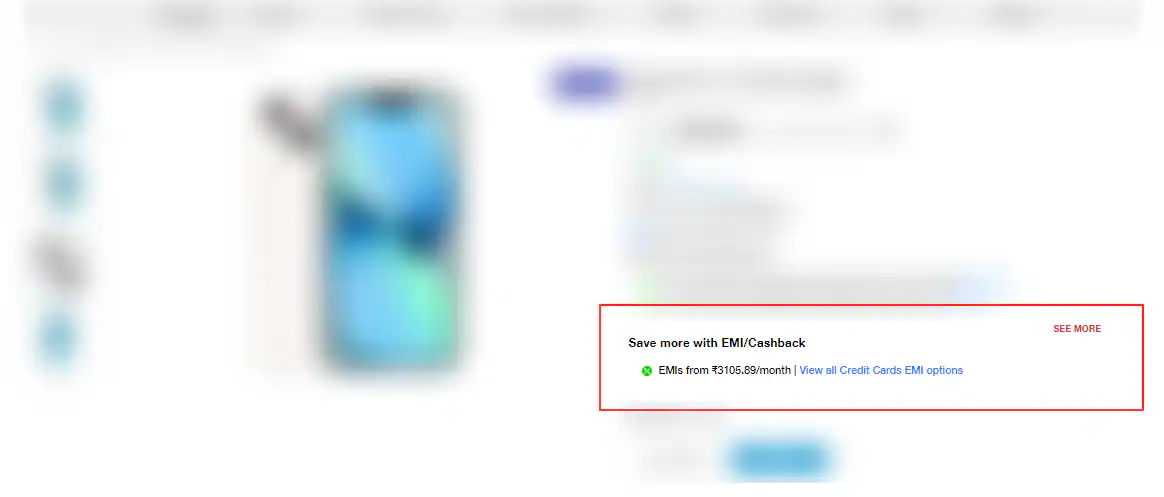 - Eligible products will have details of the eligible banks and card type (credit card or debit card) mentioned on the Product Description pages under the Save More with EMI / Cashback offers section